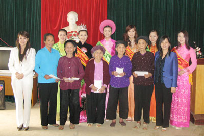 10 người đẹp đoạt giải cao đã đến dâng hương tại Nhà tưởng niệm Chủ tịch Hồ Chí Minh trên đỉnh Đèo De, xã Phú Đình; thăm nơi làm việc của Trung ương Hội LHPN Việt Nam... Đoàn đã đến thăm, tặng 10 suất quà cho mẹ, vợ liệt sỹ ở xã Điềm Mặc và Phú Đình, mỗi suất quà trị giá 500.000 đồng; tặng quà mỗi suất trị giá 3 triệu đồng cho Trường THCS Điềm Mặc và Tiểu học Hoàng Ngân (Điềm Mặc). Số tiền trên do Công ty Bảo Tín Minh Châu (Hà Nội) tài trợ và một phần tiền thưởng của các thí sinh.