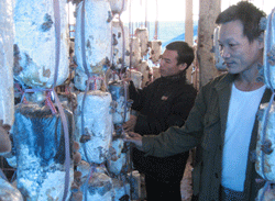Thấy được giá trị dinh dưỡng của nấm và nấm còn tiêu thụ mạnh ở thị trường nước ngoài nên từ nhiều năm nay, trên địa bàn tỉnh đã có nhiều nơi sản xuất nấm để tiêu thụ tại thị trường nội địa và xuất khẩu. Để kiểm chứng về một mô hình sản xuất và sử dụng nấm, chúng tôi đã đến xã Văn Yên (Đại Từ). Đây là một trong 5 xã của huyện (gồm Bản Ngoại, Tân Thái, Lục Ba, Vạn Thọ) triển khai Dự án sản xuất nấm từ năm 2006. Để triển khai Dự án thành công, xã đã tổ chức lớp tập huấn cho bà con nông dân trồng đến 5 loại nấm (gồm nấm rơm, nấm mỡ, mộc nhĩ, linh chi, nấm sò). Ban đầu, có 68 hộ tham gia trồng nấm, tập trung chủ yếu ở xóm Dưới Hai, nhưng đến nay chỉ còn 5 hộ trồng với hai loại nấm chính: linh chi và mộc nhĩ.
