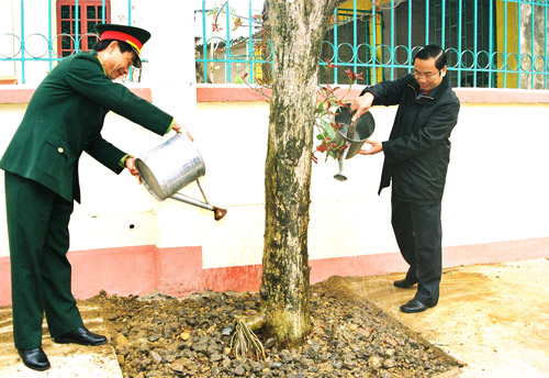Sau Lễ phát động, đồng chí Bí thư Tỉnh ủy cùng các cán bộ, chiến sĩ của Bộ CHQS tỉnh đã tham gia trồng và chăm sóc cây trong khu vực đơn vị (ảnh). Nhân dịp này, đồng chí Bí thư Tỉnh ủy đã đến thăm, chúc Tết cán bộ, chiến sĩ các đơn vị làm nhiệm vụ trực chiến của Bộ CHQS tỉnh.