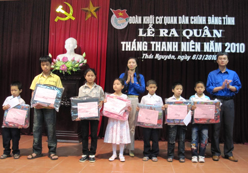 Trong ngày ra quân, Đoàn Khối Cơ quan Dân chính Đảng tỉnh đã tổ chức trồng cây "Đời đời nhớ ơn Bác Hồ" tại xã Phúc Xuân (T.P Thái Nguyên) và tặng quà 10 học sinh có hoàn cảnh khó khăn vươn lên học giỏi trên địa bàn tỉnh.