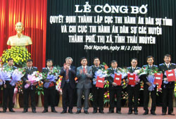 Ngày 16/3, UBND tỉnh Thái Nguyên đã tổ chức Lễ công bố Quyết định thành lập Cục Thi hành án (THA) Dân sự tỉnh Thái Nguyên và các quyết định thành lập 9 chi cục THA dân sự cấp huyện (ảnh).