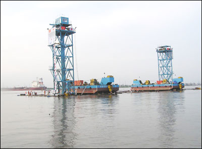 Sau 2 giờ lai dắt từ bể đúc bởi 4 chiếc tàu kéo của Thái Lan có công suất 3.500 mã lực mỗi chiếc, đốt hầm thứ hai hầm Thủ Thiêm có chiều dài 92m, rộng 33m, nặng 27.000 tấn đã đến khu vực Mũi Đèn Đỏ tiến vào cửa sông Sài Gòn và hiện chỉ còn cách vị trí đánh dìm hơn 2 km.