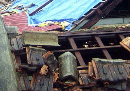 Niều nhà bị tốc mái phải che chắn bằng nilon ở Quảng Bình