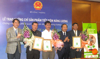 Sáng 22/3, tại Bộ Công Thương, Văn phòng Tiết kiệm Năng lượng đã tổ chức lễ trao chứng chỉ “Nhãn năng lượng so sánh” (hay còn gọi là nhãn so sánh năng lượng Việt) cho 3 nhà sản xuất quạt điện tiết kiệm năng lượng là Công ty Liên hiệp, Tân Tiến S.K và Công ty cổ phần quạt VN.