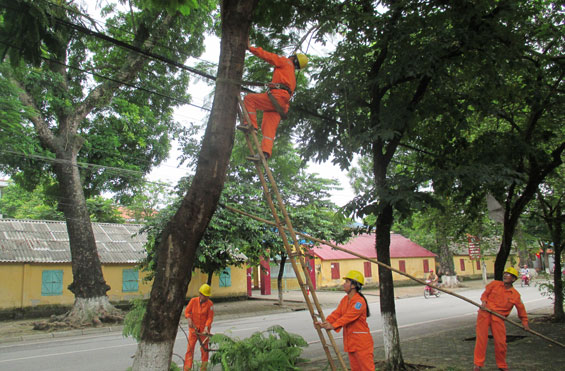 Những ngày đầu tháng 7 này, đi trên nhiều trục đường ở khu vực nội thị của T.P Thái Nguyên như Minh Cầu, Trưng Vương, Cách mạng Tháng Tám, Hoàng Văn Thụ…, chúng tôi thường xuyên bắt gặp hình ảnh các công nhân của Điện lực thành phố đang tiến hành chặt tỉa cây xanh vướng vào hệ thống đường dây, cột điện. Ông Nguyễn Hồng Sơn, một công nhân của Điện lực thành phố cho biết: Trong mùa mưa, cây cối thường phát triển nhanh nên cùng với việc sửa chữa hệ thống lưới điện, chúng tôi phải thường xuyên tiến hành chặt tỉa cành cây gây ảnh hưởng tới hệ thống đường điện, đặc biệt là với những cành cây vươn gần tới đường điện cao thế bởi có nhiều nguy cơ phóng điện, gây mất an toàn.