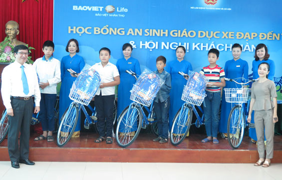 Để giúp trẻ em nghèo vơi bớt khó khăn khi mỗi ngày phải đi bộ vài km đến lớp, Tổng Công ty Bảo Việt Nhân thọ đã phối hợp với Quỹ Bảo trợ trẻ em Việt Nam tổ chức Chương trình “Học bổng An sinh giáo dục - Xe đạp đến trường năm 2016” .