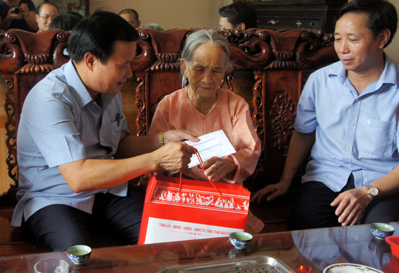 Đoàn đã đến thăm, động viên các gia đình: bà Đồng Thị Quất (vợ liệt sĩ), xóm La Giang, xã Bá Xuyên; bà Nguyễn Thị Ân (mẹ liệt sĩ), trú tại xóm Cây Lá; ông Nguyễn Ngọc Hòa là thương binh hạng 4/4, trú tại xóm Xuân Đãng 2; ông Chu Quang Thất nạn nhân chất độc hóa học, trú tại xóm Cây Lá, xã Bình Sơn. Tại các nơi đến thăm, đồng chí Phó Bí thư Thường trực Tỉnh ủy và các thành viên trong Đoàn đã ăn cần thăm hỏi sức khỏe, đồng thời mong muốn các gia đình tiếp tục phát huy tinh thần yêu nước, hăng hái thi đua đóng góp sức mình vào sự nghiệp xây dựng và phát triển của tỉnh nhà. Nhân dịp này, đồng chí đã trao quà của Tỉnh ủy, HĐND, UBND tỉnh cho các gia đình.