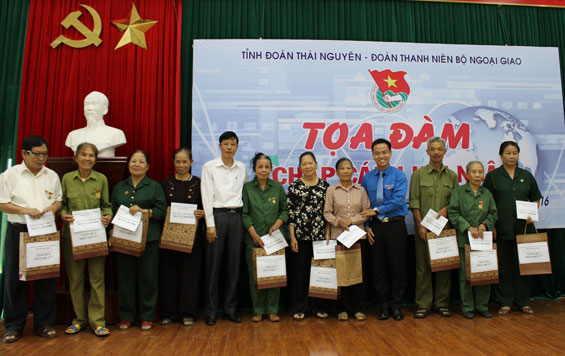 Nhân dịp này, Đoàn Thanh niên Bộ Ngoại giao đã tặng 10 suất quà (mỗi suất 500 nghìn đồng) cho 10 cựu thanh niên xung phong có hoàn cảnh khó khăn trên địa bàn T.P Thái Nguyên.
