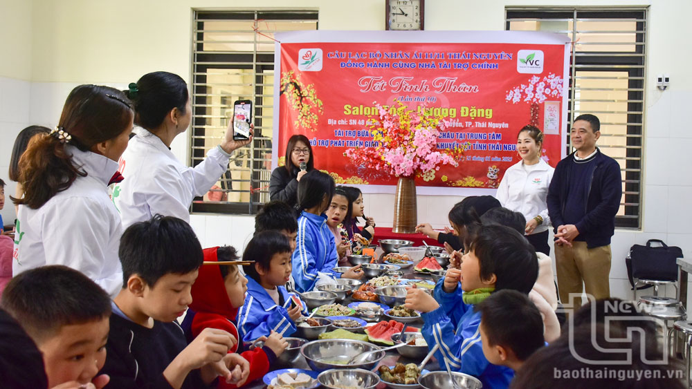 | Câu lạc bộ Nhân ái 11/11 đồng hành cùng nhà hảo tâm tổ chức bữa tiệc "Tết tình thân" cho các em tại Trung tâm Hỗ trợ phát triển giáo dục hoà nhập trẻ khuyết tật tỉnh Thái Nguyên. |