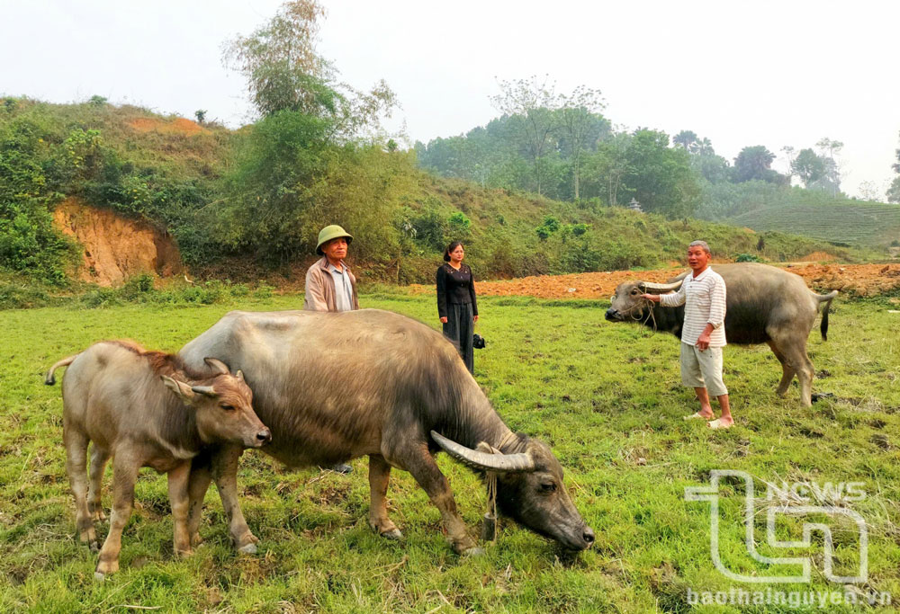 | Gia đình ông Dương Văn Phi (người thứ nhất từ phải sang), xóm Hoà Linh, xã Trung Lương thuộc diện hộ cận nghèo, sau khi được hỗ trợ chăn nuôi trâu sinh sản, đến năm 2024 đã thoát nghèo và nhân rộng đàn trâu thương phẩm tạo sinh kế bền vững. |