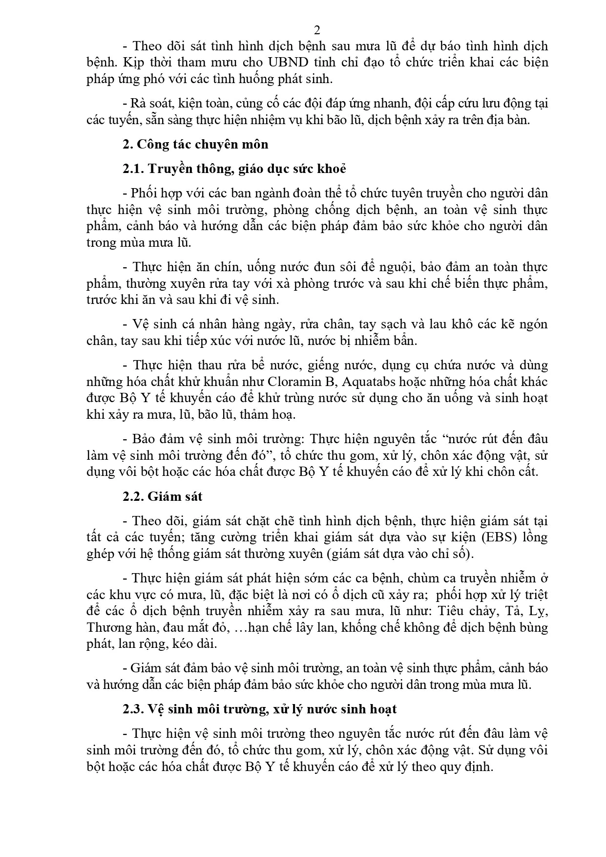 Nhằm nâng cao năng lực, chủ động ứng phó, xử lý kịp thời, hiệu quả công tác vệ sinh môi trường, phòng, chống dịch bệnh và an toàn thực phẩm sau mưa lũ, Sở Y tế đã ban hành Kế hoạch số 2787/KH-SYT, về đảm bảo vệ sinh môi trường, phòng, chống dịch bệnh và an toàn thực phẩm sau mưa, lũ của bão số 11. Nội dung như sau: