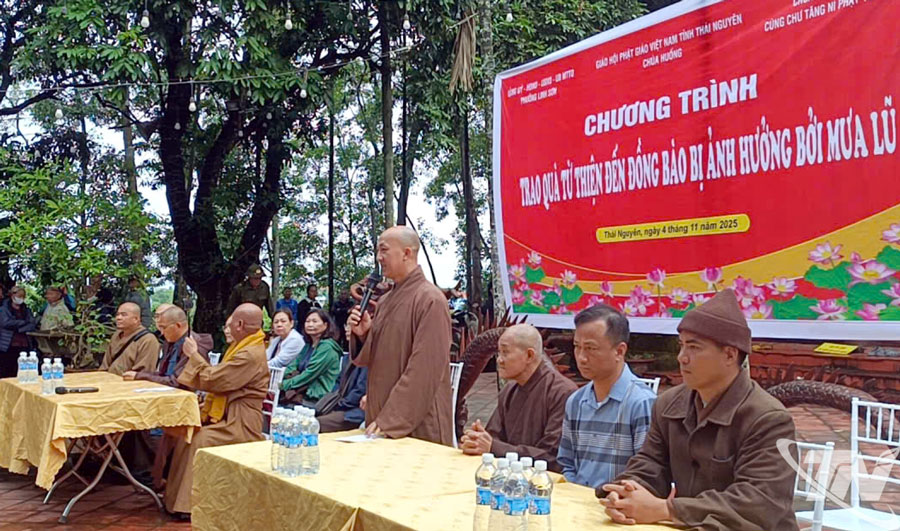 Nhằm giúp người dân khắc phục hậu quả cơn bão số 11 vừa qua, ngày 4-11, Giáo hội Phật giáo Việt Nam tỉnh Thái Nguyên phối hợp với cấp ủy, chính quyền phường Linh Sơn và tăng ni, phật tử châu Âu trao quà cho người dân Thái Nguyên chịu nhiều thiệt hại do thiên tai.