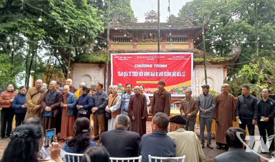 Tại buổi trao quà, đại diện Giáo hội Phật giáo Việt Nam tỉnh Thái Nguyên trao 1.600 suất quà tổng trị giá 1,6 tỷ đồng cho người dân bị ảnh hưởng nặng bởi thiên tai.