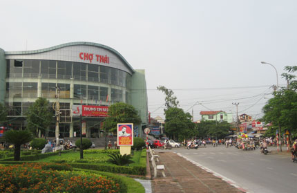 Hiện tại, chợ đã đưa vào khai thác 4 tầng với diện tích sử dụng kinh doanh chiếm 70%. Chợ Thái từ lâu không chỉ là nơi bán lẻ mà còn là nơi trung chuyển hàng hóa đi các huyện, tỉnh lân cận với quy mô lớn nhất tỉnh. Hàng hóa ở đây không thiếu thứ gì, mùa nào thức ấy: từ mớ rau, con cá, vàng hương, bánh kẹo, hoa quả bốn mùa đến hàng quà bánh, hàng tiêu dùng: vải vóc, quần áo, giày dép, túi xách, đồ thờ cúng, đồ lưu niệm; điện, điện tử, vàng bạc, sách vở… Trên tầng 2, bên cạnh các hộ bán quần áo may sẵn còn có 4 doanh nghiệp hoạt động, với sự tham gia của Ngân hàng Quân đội, Ngân hàng Thương mại cổ phần Công Thương Việt Nam đáp ứng nhu cầu vốn cho các tiểu thương trong chợ và các thành phần kinh tế gần khu vực chợ; kinh doanh vàng bạc. Chợ còn có sự tham gia của 420 hộ kinh doanh, mỗi năm đóng góp cho ngân sách Nhà nước trên dưới 2 tỷ đồng; giải quyết việc làm cho hàng nghìn lao động xã hội thông qua các dịch vụ, kinh doanh.