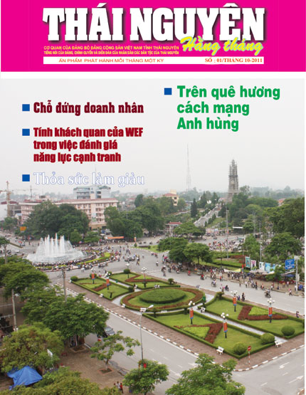 Thái Nguyên Hằng tháng số 01 tháng 10-2011, gồm 36 trang, khổ 20,5cm x 29,5cm; in 4 mầu, phát hành ngày 01-10-2011. Nội dung chủ yếu tập trung vào chủ đề: Xây dựng Đảng, Ngày Doanh nhân Việt Nam (13-10) với các bài viết: