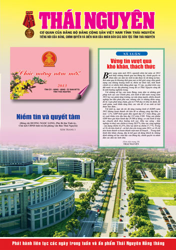 Chào năm mới 2013 với niềm tin, quyết tâm lớn của Đảng bộ, chính quyền và nhân dân các dân tộc trong tỉnh để tiếp tục giành nhiều thắng lợi trong công cuộc phát triển kinh tế - xã hội, Báo Thái Nguyên xuất bản số báo Tết dương lịch dày 28 trang, nội dung phong phú, hấp dẫn. Số báo này gộp 3 số (từ số báo 3775, ra ngày 29-12-2012 đến số báo 3777, ra ngày 2-1-2013), với các bài chính: