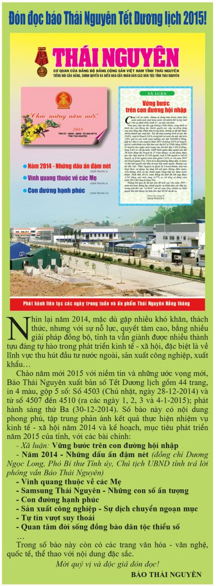 52 năm qua, Báo Thái Nguyên đã đồng hành cùng Đảng bộ và nhân dân các dân tộc trong sự nghiệp xây dựng và phát triển kinh tế - xã hội của tỉnh; góp phần đưa chủ trương, đường lối của Đảng, chính sách, pháp luật của Nhà nước đến với đồng bào các dân tộc trong và ngoài tỉnh, phản ánh kịp thời, sinh động thực tiễn phong phú về mảnh đất và con người Thái Nguyên.