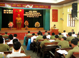Sáng nay, 11-6, Đảng ủy Quân sự tỉnh Thái Nguyên đã tổ chức Hội nghị đánh giá kết quả lãnh đạo thực hiện Nghị quyết 79 ngày 28-8-2001 của Đảng ủy Quân khu I về nhiệm vụ quốc phòng-quân sự địa phương 5 năm (2001-2006).