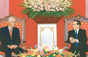 Chiều 11-12, tại trụ sở T.Ư Ðảng, Tổng Bí thư Nông Ðức Mạnh đã tiếp và nói chuyện thân mật với Bộ trưởng Cấp cao Singapore, Ngài Goh Chok Tong, đang ở thăm Việt Nam.