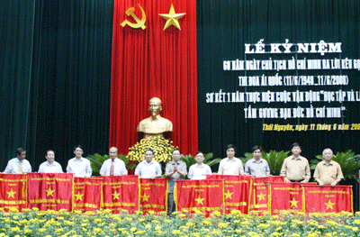 Sáng nay (11-6), Tỉnh ủy Thái Nguyên đã tổ chức Lễ kỷ niệm 60 năm Chủ tịch Hồ Chí Minh ra lời kêu gọi thi đua ái quốc (11-6-1948 - 11-6-2008) và sơ kết 1 năm thực hiện Cuộc vận động “Học tập và làm theo tấm gương đạo đức Hồ Chí Minh”.