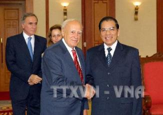 Tiếp Tổng thống Cộng hòa Hy Lạp Karolos Papoulias chiều 13/10 tại Hà Nội nhân chuyến thăm chính thức Việt Nam, lãnh đạo Đảng, Quốc hội Việt Nam nhấn mạnh Việt Nam coi trọng phát triển quan hệ hữu nghị và hợp tác với Hy Lạp.