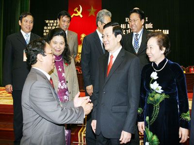 Trao đổi với gần 500 đại biểu dự đại hội, ông Trương Tấn Sang nói phải có nhận thức đúng về vị trí, vai trò của công tác đối ngoại nhân dân. Theo ông, trong thời kỳ đổi mới và hội nhập kinh tế thế giới, mở rộng giao lưu quốc tế, sự đồng tình, ủng hộ, đoàn kết và hợp tác của nhân dân các nước tiếp tục là nhân tố rất quan trọng đối với sự nghiệp xây dựng và bảo vệ Tổ quốc của nhân dân VN.