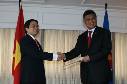 - Sau Singapore, Việt Nam là nước thứ hai trong khu vực chính thức có Đại sứ tại ASEAN. Ngày 19/2, ông Vũ Đăng Dũng, Đại sứ, Trưởng Phái đoàn Đại diện thường trực Việt Nam tại ASEAN đã trình thư ủy nhiệm của Phó Thủ tướng, Bộ trưởng Ngoại giao Phạm Gia Khiêm lên Tổng Thư ký ASEAN Surin Pitsuwan tại Jakarta, Indonesia.