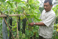 Đặc biệt, năm 2008, sau khi đi tham quan nghiên cứu một số mô hình cây trồng có hiệu quả ở các địa phương khác, Đảng uỷ xã đã quyết định chọn vụ xuân 2009 để triển khai mô hình điểm trồng bí xanh trên diện tích 2ha và đã mang lại hiệu quả thiết thực, với giá trị kinh tế đạt 3 đến 4 triệu đồng/ha, cao gấp 5-7 lần trồng lúa. Vụ hè thu vừa qua, Đảng bộ xã tiếp tục chỉ đạo nhân rộng mô hình trồng bí xanh ra 3 ha. Trao đổi với chúng tôi đồng chí Đồng Văn Quy, Phó Chủ tịch UBND xã Bá Xuyên, người trực tiếp đi tham quan và đưa mô hình này từ Mê Linh - Hà Nội về và phụ trách kỹ thuật trồng bí của xã cho biết: “Khi mô hình này triển khai ra diện rộng, chính quyền xã sẽ đứng ra phối hợp với các đơn vị thu mua để ký kết hợp đồng, tạo đầu ra ổn định cho bà con trồng bí, tránh để xảy ra tình trạng tư thương ép giá nông dân”.