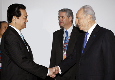 Tại cuộc gặp Tổng thống Israel Simon Peres, Thủ tướng Nguyễn Tấn Dũng cho biết, Việt Nam coi trọng quan hệ hữu nghị hợp tác với Israel và quan hệ hai nước trong những năm qua đã có bước phát triển tốt đẹp. Việt