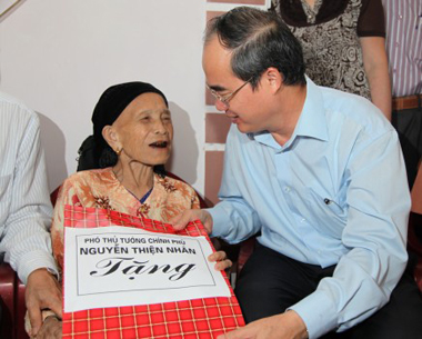 Cũng trong không khí cả nước hướng về kỷ niệm ngày Thương binh – Liệt sĩ, sáng 24/7, Phó Thủ tướng Nguyễn Thiện Nhân và Đoàn công tác Chính phủ đã tới thăm hỏi, động viên và tặng quà 55 đối tượng chính sách là Mẹ Việt Nam anh hùng, thương bệnh binh và người có công hiện đang sống tại Trung tâm bảo trợ xã hội tỉnh Hà Tĩnh.