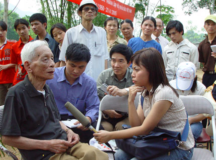 Nhà báo lão thành Hoàng Tùng trả lời phỏng vấn các nhà báo trẻ tại Thái Nguyên. Ảnh: Nguyễn Bắc Son