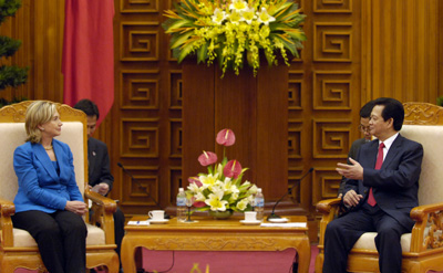Thay mặt Chính phủ Việt Nam, Thủ tướng Nguyễn Tấn Dũng hoan nghênh và đánh giá cao chuyến thăm làm việc tại Việt Nam nhân dịp kỷ niệm 15 năm hai nước bình thường hóa quan hệ ngoại giao và tham dự các hội nghị ASEAN liên quan và Diễn đàn an ninh khu vực (ARF). Thủ tướng đánh giá cao kết quả cuộc hội đàm của bà Ngoại trưởng với Phó Thủ tướng, Bộ trưởng Ngoại giao Phạm Gia Khiêm; cảm ơn Chính phủ Hoa Kỳ mà trực tiếp là Ngoại trưởng Hoa Kỳ Hillary Clinton đã ký hỗ trợ Việt Nam hơn 100 triệu USD cho chương trình phòng chống HIV, AIDS.