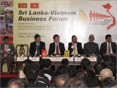 Phát biểu tại Diễn đàn, Chủ tịch nước Trương Tấn Sang thông báo tin vui rằng, tại cuộc hội đàm, lãnh đạo cấp cao hai nước đặt quyết tâm nâng kim ngạch thương mại hai chiều lên 1 tỷ USD trong những năm tới. Chủ tịch nước cho rằng, mức 100 triệu USD giá trị xuất nhập khẩu giữa hai nước dự kiến năm 2011 chưa tương xứng với quan hệ tốt đẹp giữa Việt Nam và Sri Lanka. Giữa hai nước có nhiều lĩnh vực có thể hợp tác và nhiệm vụ của doanh nghiệp là phải cụ thể hóa.
