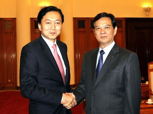 Bày tỏ vinh dự được gặp lại Thủ tướng Nguyễn Tấn Dũng, cựu Thủ tướng Nhật Bản Yukio Hatoyama khẳng định Chính phủ, nhân dân Nhật Bản luôn coi trọng mối quan hệ đối tác chiến lược với Việt Nam. Đồng thời bày tỏ lòng biết ơn sâu sắc đối với sự ủng hộ, giúp đỡ của nhân dân Việt Nam đối với Nhật Bản sau trận động đất và sóng thần vừa qua. Ngài Yukio Hatoyama mong đợi chuyến thăm Nhật Bản lần này của Thủ tướng Nguyễn Tấn Dũng sẽ đạt được những kết quả quan trọng, 2 bên sẽ thống nhất và ký kết nhiều văn kiện quan trọng trong việc triển khai các dự án hợp tác lớn mà 2 nước đã thỏa thuận./.