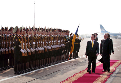 Lễ đón chính thức Thủ tướng Nguyễn Tấn Dũng được tổ chức trọng thể sáng 4-10 tại Sân bay quốc tế Borispol.