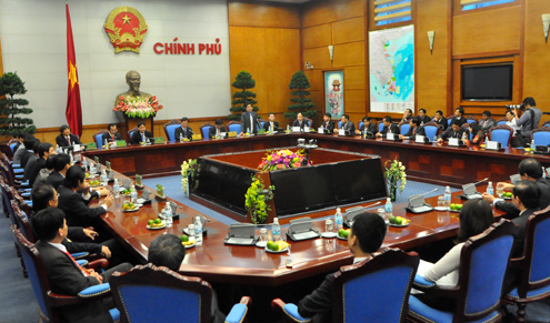 Về phần mình, người đứng đầu Chính phủ khẳng định cơ quan quản lý sẽ tạo mọi điều kiện và môi trường thuận lợi để các doanh nghiệp sản xuất và kinh doanh có hiệu quả. Thủ tướng cũng nhấn mạnh đến vấn đề thể chế khi cho rằng Chính phủ sẽ cố gắng đảm bảo một môi trường pháp lý để các doanh nghiệp có điều kiện phát triển như nhau. “Doanh nghiệp nào có năng lực thì sẽ đều được phát huy, khẳng đinh”, Thủ tướng nói.