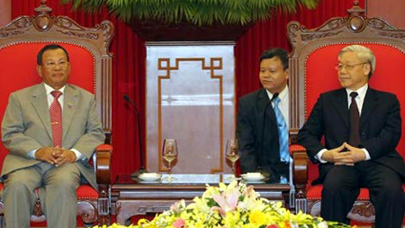 Tổng Bí thư Nguyễn Phú Trọng tại buổi tiếp ông Sai Chhum, Ủy viên Ban Thường vụ, Trưởng Ban Thường trực Ban Thường vụ Trung ương Đảng Nhân dân Campuchia.