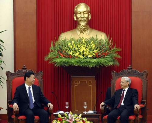 Đồng chí Tập Cận Bình chân thành cảm ơn Tổng Bí thư Nguyễn Phú Trọng đã dành thời gian tiếp; trân trọng chuyển lời thăm hỏi thân thiết và lời chúc tốt đẹp của Tổng Bí thư, Chủ tịch nước Trung Quốc Hồ Cẩm Đào tới Tổng Bí thư Nguyễn Phú Trọng. Đồng chí Tập Cận Bình bày tỏ vui mừng sang thăm Việt Nam, được tận mắt chứng kiến những thành tựu to lớn của sự nghiệp đổi mới và phát triển của Việt Nam; tin tưởng vững chắc rằng, dưới sự lãnh đạo của Đảng Cộng sản Việt Nam, nhân dân Việt Nam nhất định giành được nhiều thành tựu mới, to lớn hơn nữa, xây dựng thành công nước Việt Nam hiện đại hóa, xã hội chủ nghĩa.