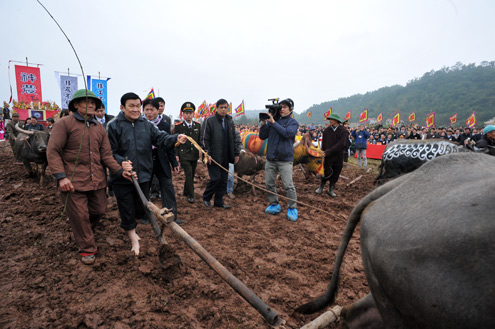 Chủ tịch nước Trương Tấn Sang tham dự và làm lễ dâng hương trước bàn thờ thần nông và linh vị vua Lê Đại Hành. Sử sách ghi lại, mùa xuân năm 987, vua Lê Đại Hành từng về chân núi Đọi làm lễ Tịch điền đầu tiên trong lịch sử, mở ra một trang sử mới cho nền nông nghiệp Việt Nam.