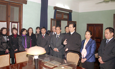 Thăm hỏi cán bộ, công nhân viên Khu di tích, Thủ tướng Nguyễn Tấn Dũng biểu dương tập thể cán bộ, công nhân viên đã giữ gìn, bảo vệ nguyên vẹn các kỷ niệm và hiện vật gắn liền với cuộc đời của Bác.