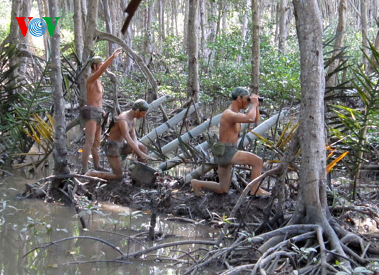 Ấn tượng hơn cả là những bức tượng “sống” về các chiến sĩ đặc công rừng Sác được tạo dựng ở đây. Góc này là cảnh họ đang trình bày phương án và hạ quyết tâm tập kích phá hủy kho xăng Nhà Bè. Nơi kia một nhóm mình trần, quần xà lỏn đang chuẩn bị vũ khí chiến đấu. Dưới lạch, một chiến sỹ quần nhau với cá sấu. Ở bìa rừng, chỉ huy đang giao nhiệm vụ và tiễn đưa các chiến sĩ ra trận. Bên bể nước mưa hứng từ ngọn cây, o du kích nhỏ đang chưng cất nước ngọt từ nước mặn theo kiểu nấu rượu… Đến đây, được tận mắt nhìn thấy khung cảnh sinh hoạt, chiến đấu của những người lính Cụ Hồ trong lòng mỗi người trào dâng những tình cảm trân trọng, khâm phục xen lẫn sự biết ơn.