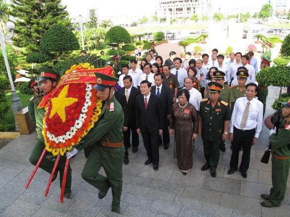 Trước đó, trong buổi sáng sớm nay, Chủ tịch nước Trương Tấn Sang và đoàn đại biểu của Đảng, Nhà nước, Quốc hội, các cơ quan Trung ương cùng toàn thể đại biểu dự Hội nghị đã đến đặt vòng hoa, dâng hương tưởng niệm các anh hùng liệt sĩ tại Đài Tưởng niệm Liệt sĩ TP Đà Nẵng.