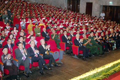 Tham dự buổi lễ còn có các đồng chí Ủy viên Bộ Chính trị, Bí thư Trung ương Đảng, các Phó Thủ tướng Chính phủ, phó Chủ tịch Quốc hội, đại diện lãnh đạo các bộ, ban, ngành Trung ương, các đồng chí lão thành Cách mạng, Mẹ Việt Nam anh hùng, Anh hùng lực lượng vũ trang, Anh hùng lao động, đại diện thương binh, bệnh binh, gia đình liệt sỹ cùng đông đảo tầng lớp nhân dân Thủ đô… Nguyên Tổng Bí thư Đỗ Mười gửi lẵng hoa tới lễ kỷ niệm trang trọng này.
