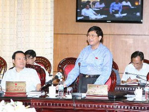 Thẩm quyền của cơ quan chức năng trong việc gia hạn nộp thuế; mức phạt chậm nộp thuế là 2 nội dung chính Ủy ban Thường vụ Quốc hội (UBTVQH) cho ý kiến ngày 15-8 khi thẩm tra dự án Luật sửa đổi bổ sung một số điều của Luật quản lý thuế. Chủ tịch QH Nguyễn Sinh Hùng cùng lãnh đạo nhiều bộ, ngành liên quan dự.