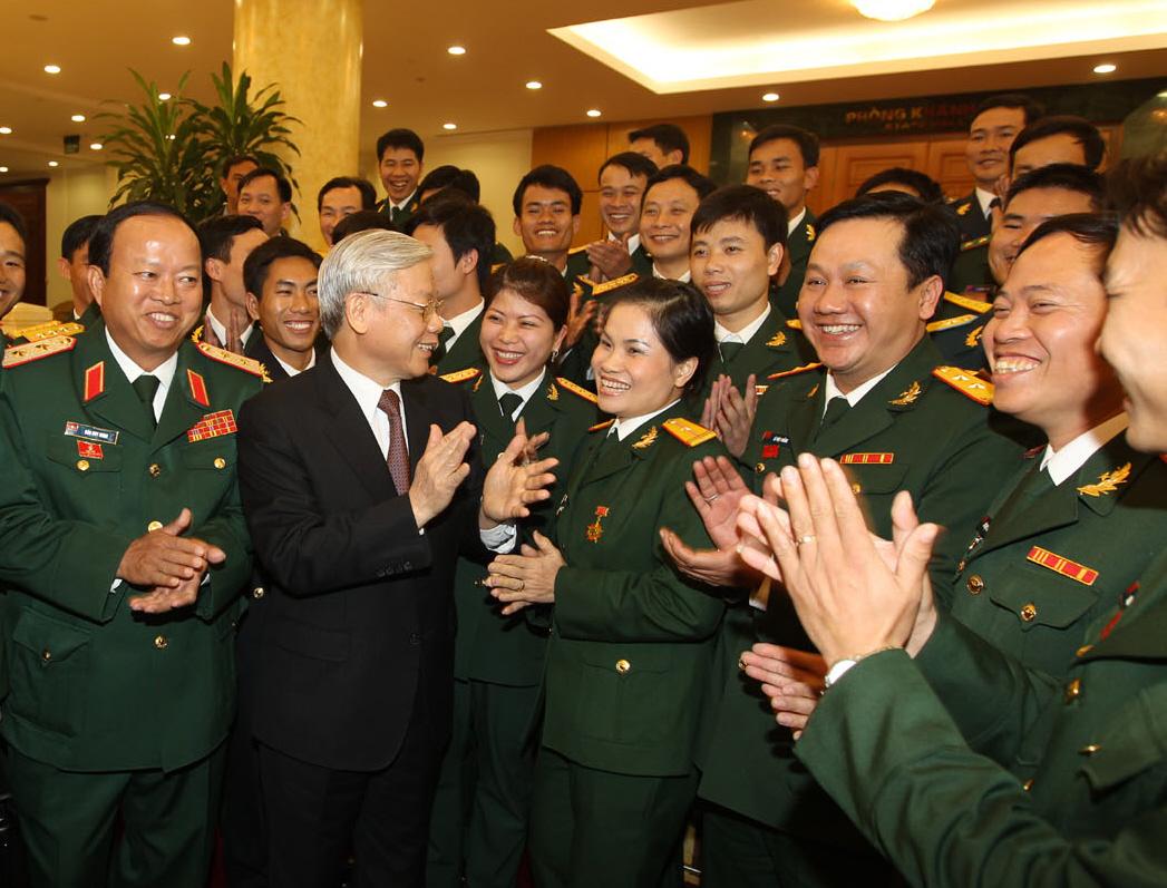 Thay mặt Ban chấp hành Trung ương, Quân ủy Trung ương, Tổng Bí thư nhiệt liệt biểu dương những kết quả đạt được của thanh niên quân đội trong thời gian qua. Cùng với tuổi trẻ cả nước, thanh niên quân đội đã và đang viết tiếp những trang sử hào hùng của dân tộc, của Quân đội nhân dân Việt Nam anh hùng.