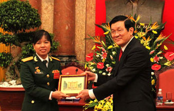 Chiều 23/8, tại Phủ Chủ tịch, Chủ tịch nước Trương Tấn Sang có buổi gặp mặt thân mật 120 đại biểu đại diện cho các điển hình tiên tiến trong học tập và làm theo tấm gương đạo đức Hồ Chí Minh của Quân đội, nhân dịp về dự Hội nghị điển hình tiên tiến toàn quân sẽ diễn ra tại Hà Nội vào ngày mai (24/8).