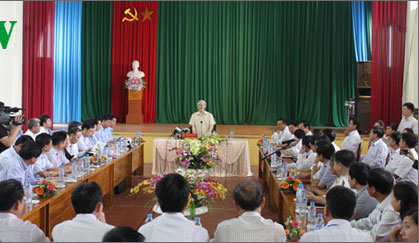 Chiều cùng ngày, Tổng Bí thư Nguyễn Phú Trọng buổi làm việc với cán bộ chủ chốt của tỉnh Bắc Giang./.