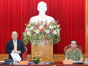 Chủ tịch Quốc hội Nguyễn Sinh Hùng đề nghị Đảng ủy Công an Trung ương cần phát huy kết quả một số giải pháp về công tác xây dựng Đảng, công tác chính trị, tư tưởng, tổ chức cán bộ, sinh hoạt nội bộ; đồng thời chủ động, tích cực hơn trong việc kiểm tra, giám sát khắc phục sửa chữa khuyết điểm với tinh thần thẳng thắn, quyết liệt, không định kiến hay xuê xoa, né tránh.