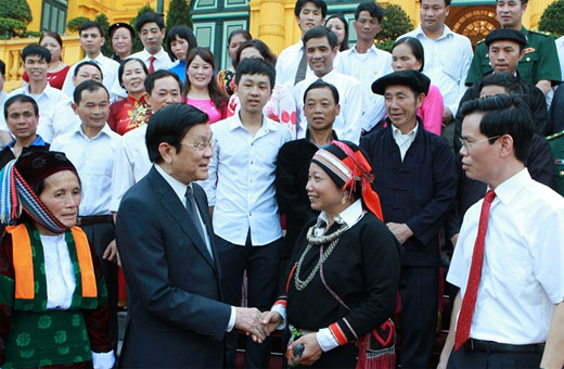 Trong không khí cả nước hướng về kỷ niệm 124 năm ngày sinh Chủ tịch Hồ Chí Minh (19/5/1890-19/5/2014), ngày 13/5, tại Phủ Chủ tịch, Chủ tịch nước Trương Tấn Sang đã gặp mặt 70 đại biểu điển hình tiên tiến trong cuộc vận động về Học tập và làm theo tấm gương đạo đức Hồ Chí Minh tỉnh Hà Giang về báo công tại Thủ đô Hà Nội.
