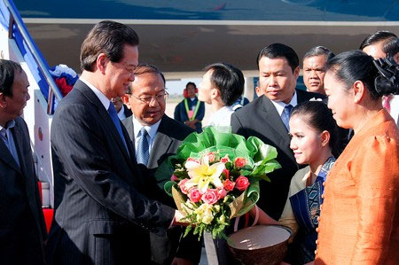 Chiều 24-11, Thủ tướng Nguyễn Tấn Dũng cùng đoàn đại biểu Việt Nam đã tới thủ đô Viêng Chăn, Lào, bắt đầu chuyến tham dự Hội nghị Cấp cao Khu vực Tam giác phát triển Campuchia - Lào - Việt Nam lần thứ 8.